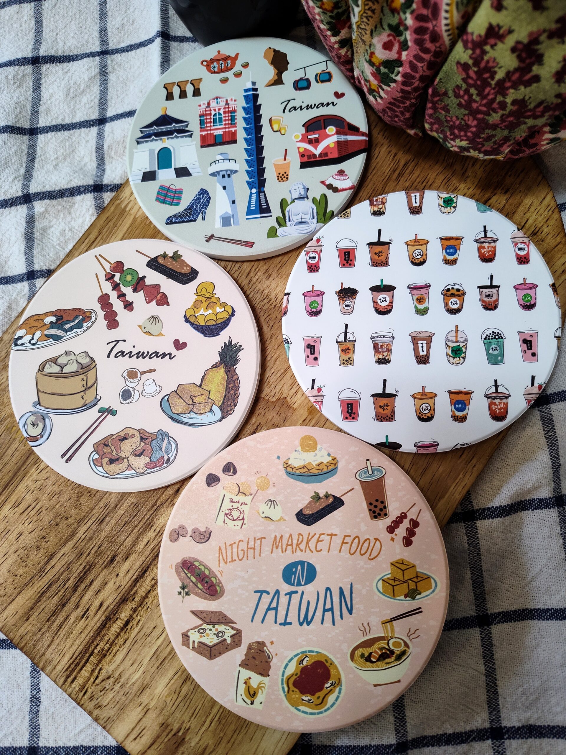 Porcelain Coasters with Taiwan Landmark/Night Market/Street Food/Bubble Tea theme